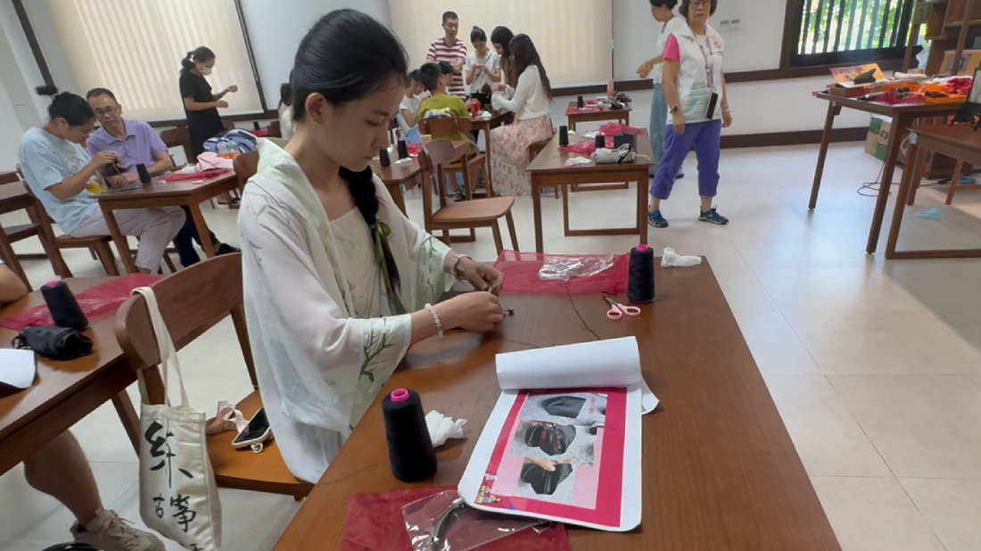 在广州市文化馆内,香云纱口金包制作课程诱骗了多个年事层的学员前来体验。