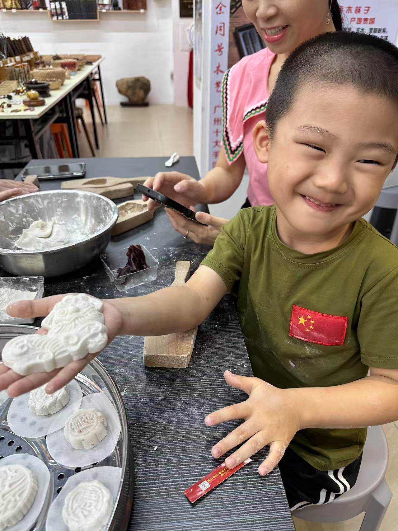 7月25日,永庆坊非遗街区迎来两批共30位香港后生,“广州饼印武艺”省级非遗传承东谈主余兆基切身示范。