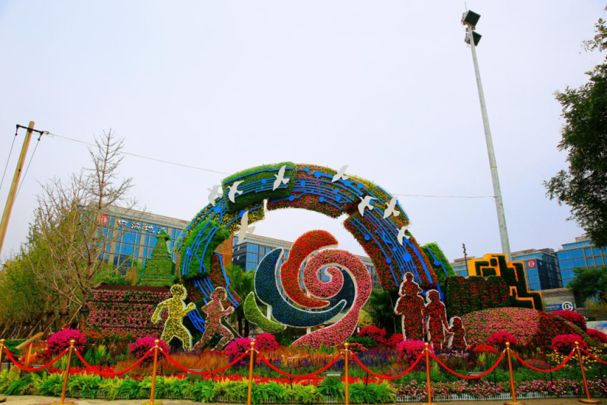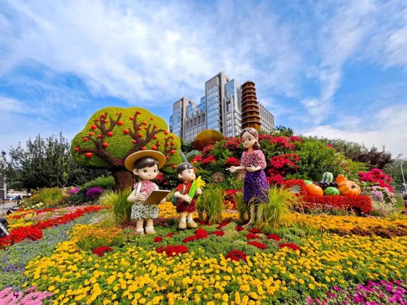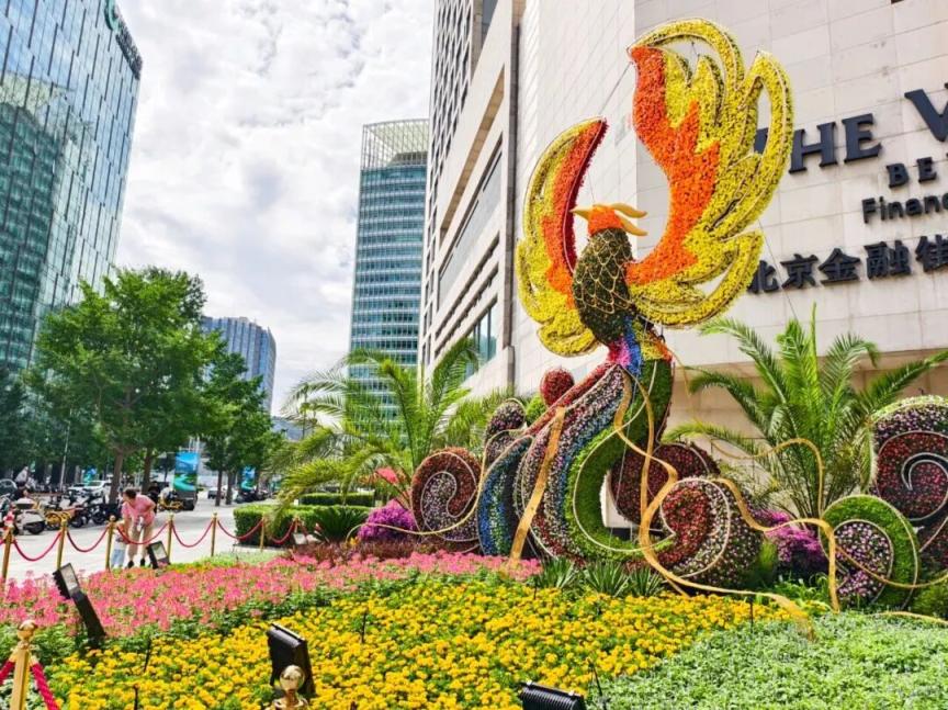 在金融街威斯汀大酒店东北角、菜市口东南角及什刹海荷花阛阓尽心交代了3组以金凤呈祥、幸福西城、运河之端为主题的立体花坛,依时局文化特色融入节日元素,彰显“似锦似锦祝故国,花漾生涯绽新颜”的总体理念。