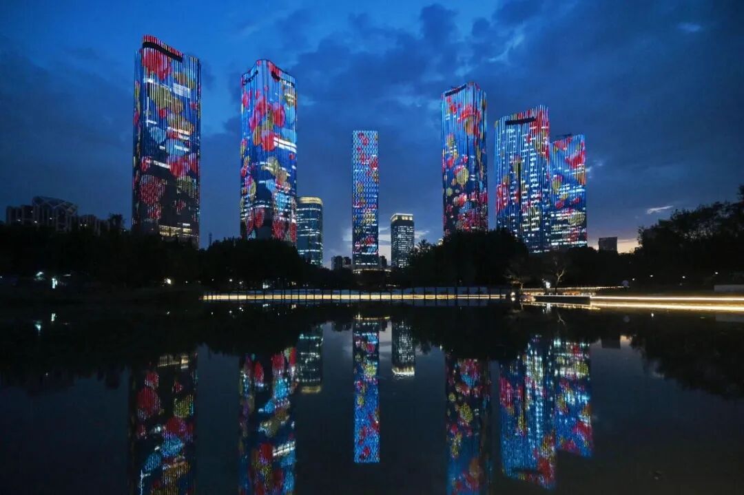 海淀区城市贬责委广告景不雅贬责科相关郑重东谈主先容,这次国庆灯光秀以中关村广场组团建筑为中枢载体,中钢大厦、E世界、鼎好AB座、数码、鼎盛大厦等建筑造竖立面动画联动;而秋日枫叶动画与大街沿线19处建筑、11座天桥及双螺旋灯光氛围联动,呈现整条大街一台戏的成果。