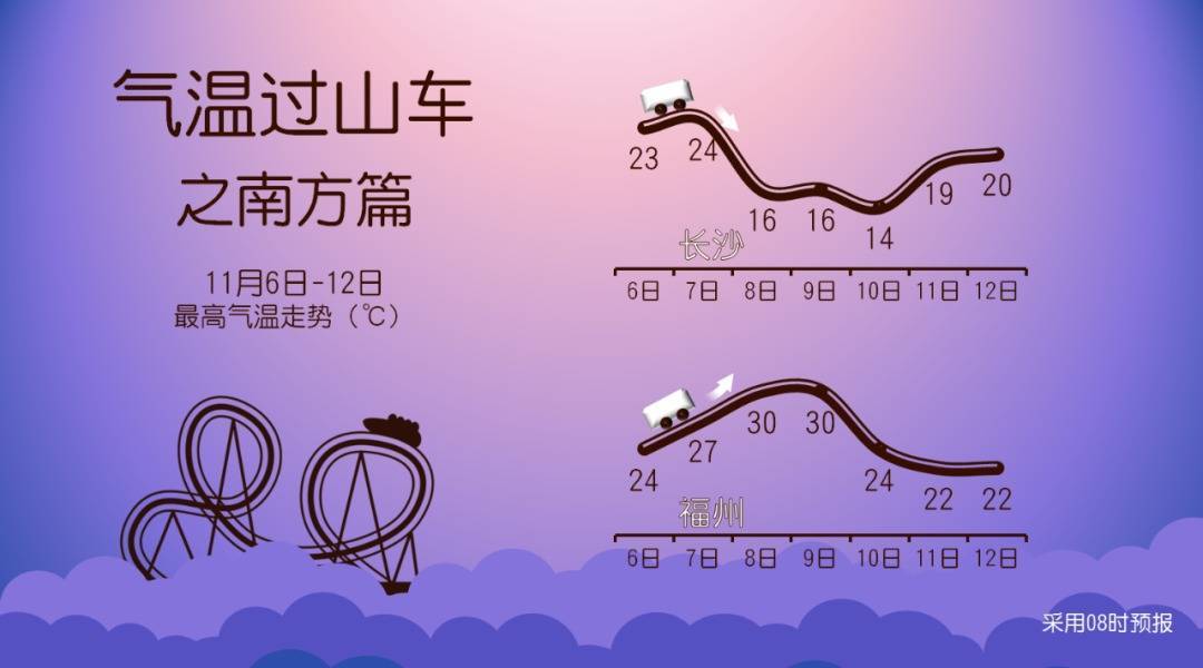 降雨未涉及到的华南一带则仿佛回到了夏令景况。像是福州、广州等地8日前后最高气温接近30℃,与其他地区的气温互异极大。