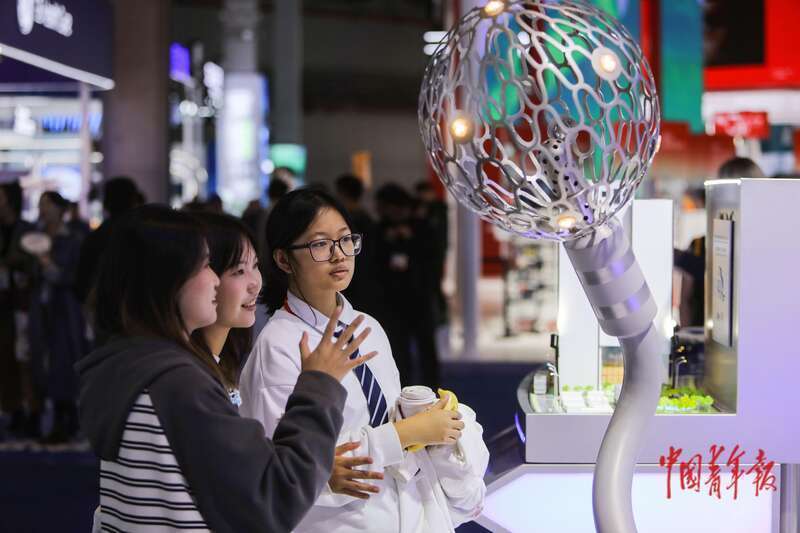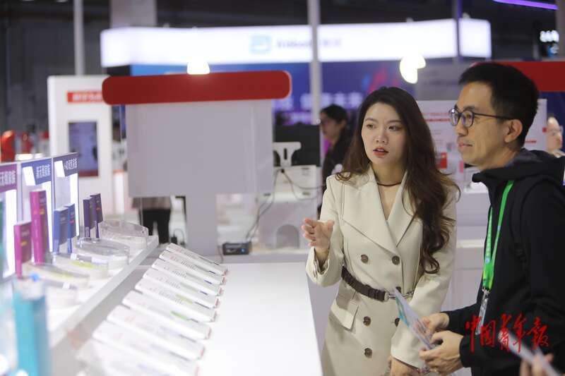11月10日,上海国度会展中心,第八届中国外洋入口展览会医疗器械及医疗保险展区,几名来自上海健康医学院的大学生在不雅看一款脉冲射频双能量及高精密度标测三合一全功能导管的模子,这是该居品在中国首展。中青报·中青网记者 孔斯琪/摄