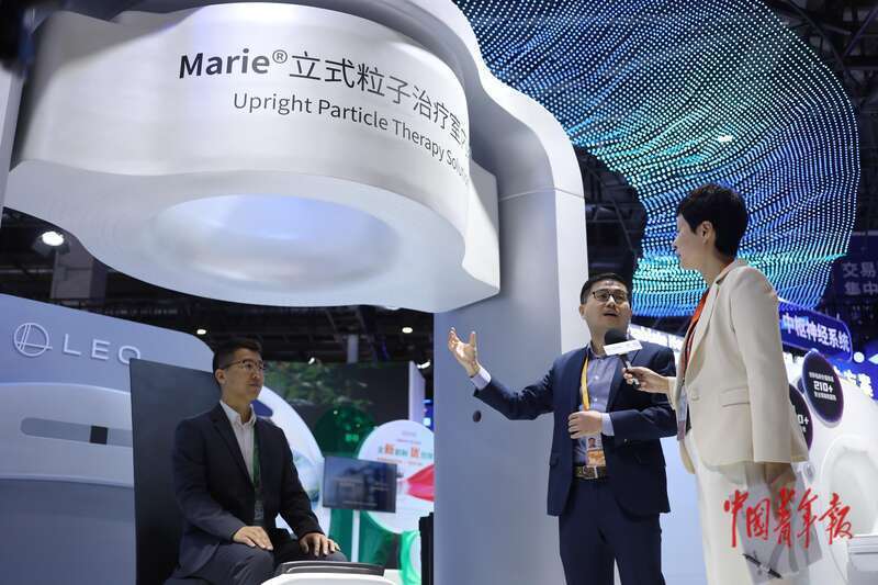 11月10日,上海国度会展中心,第八届中国外洋入口展览会医疗器械及医疗保险展区,又名参展商在向参不雅者先容一款用于肿瘤放疗的立式粒子休养室内系统。中青报·中青网记者 孔斯琪/摄